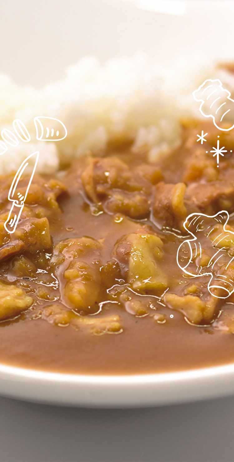 生姜の粗みじん切りがザクザク入った食感が楽しいカレー。生姜のピリッとした辛味と風味が特徴です。